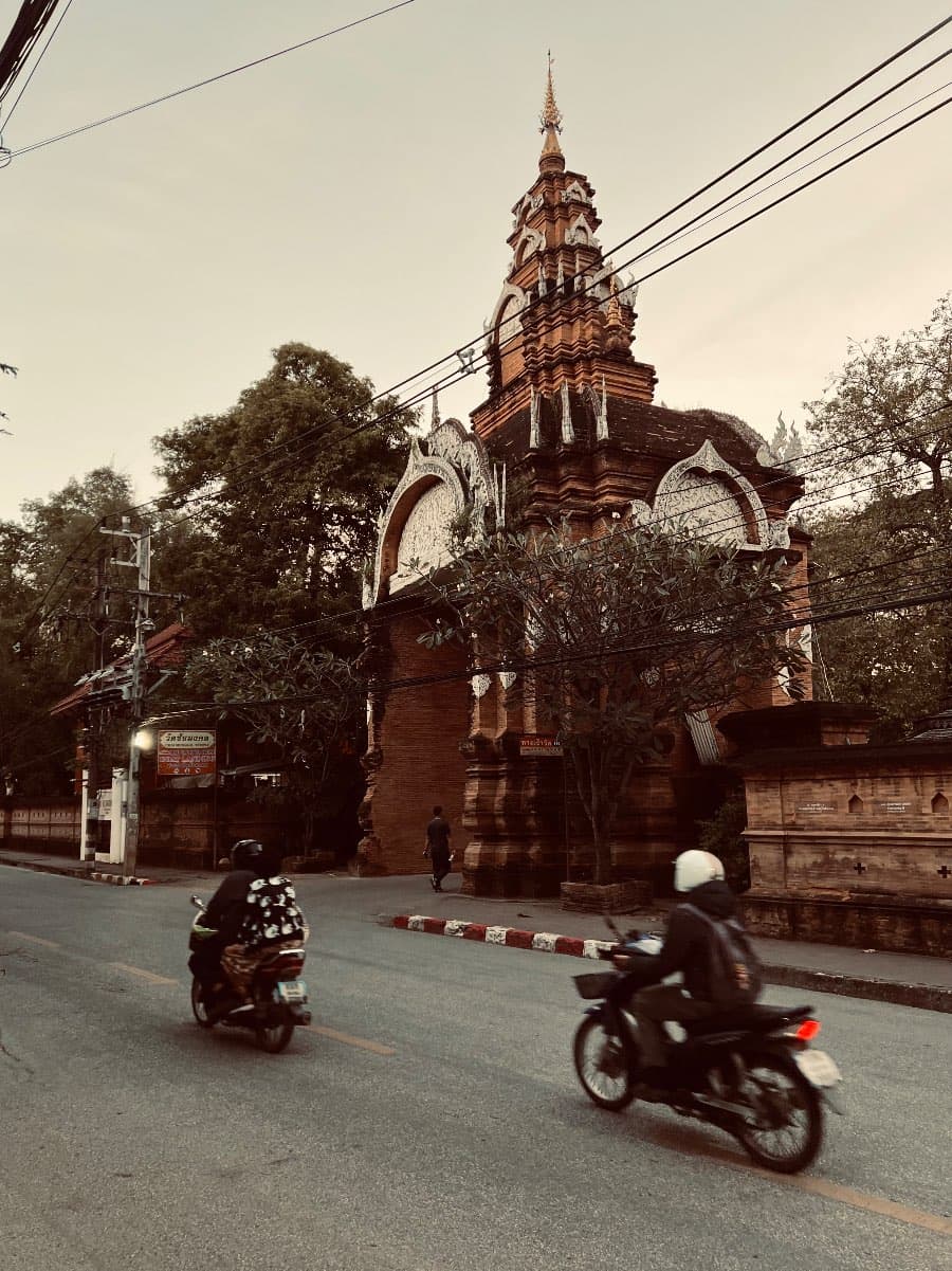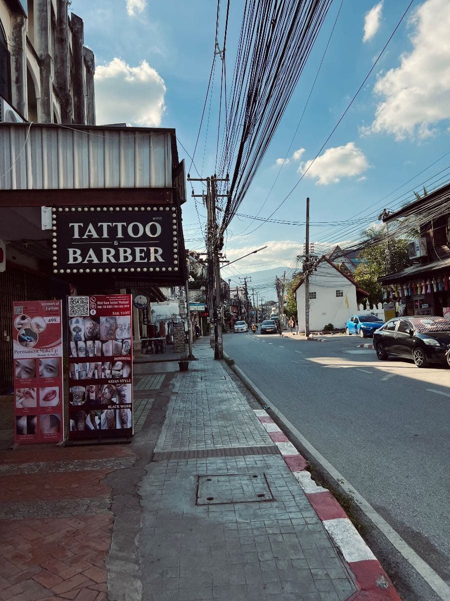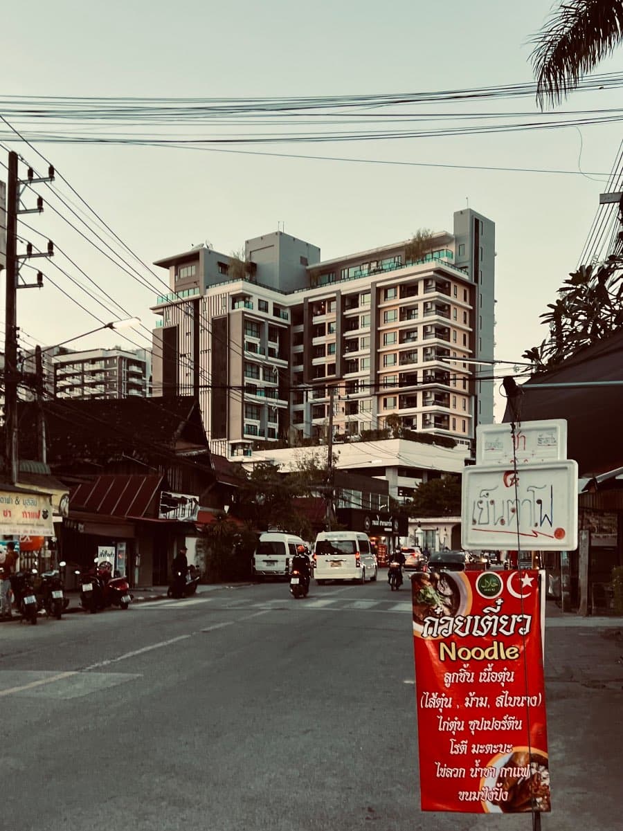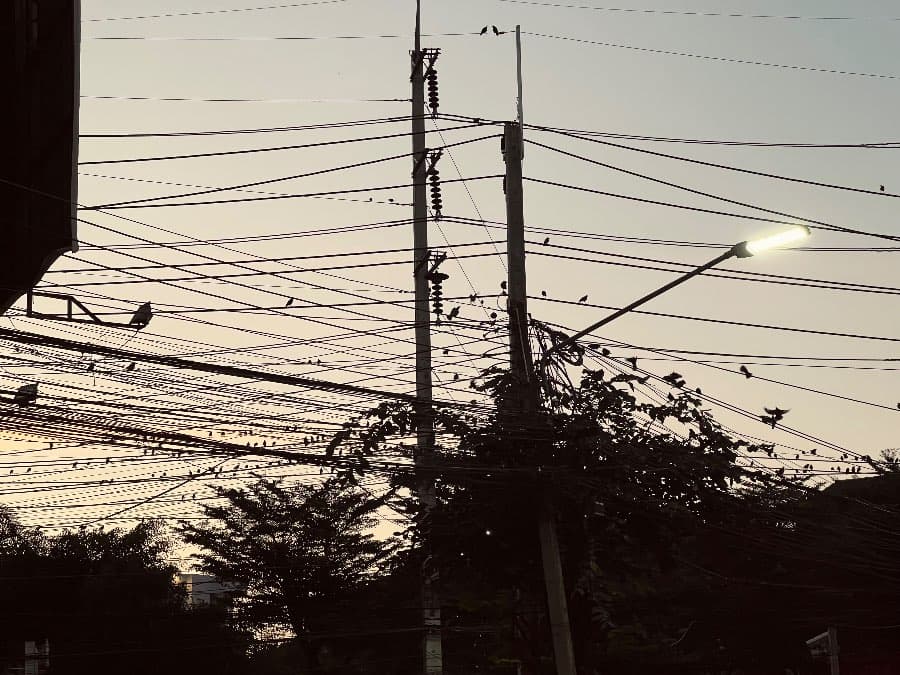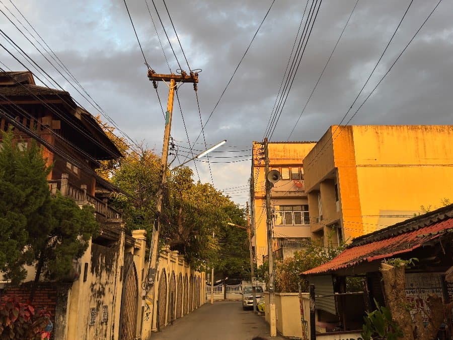 They hang in dense, tangled clusters above the roads, looping and crossing without clear logic. In places shaped by strict systems, wires are hidden, disciplined, invisible. In Chiang Mai, they remain exposed, carrying the marks of time—lines added, repaired, abandoned, yet never removed.